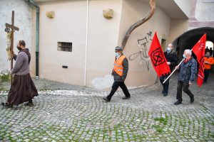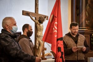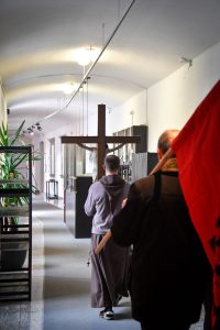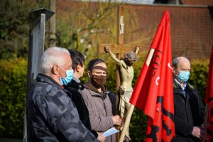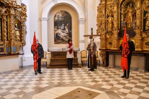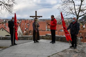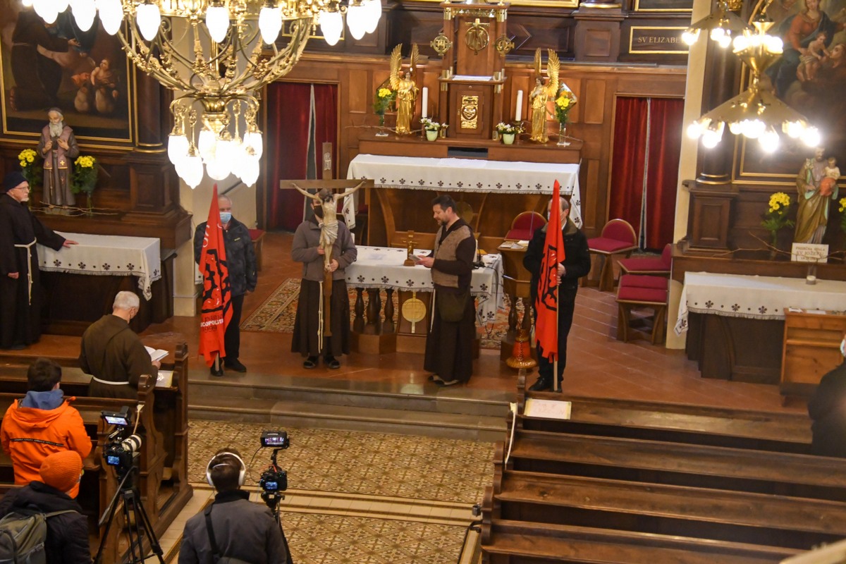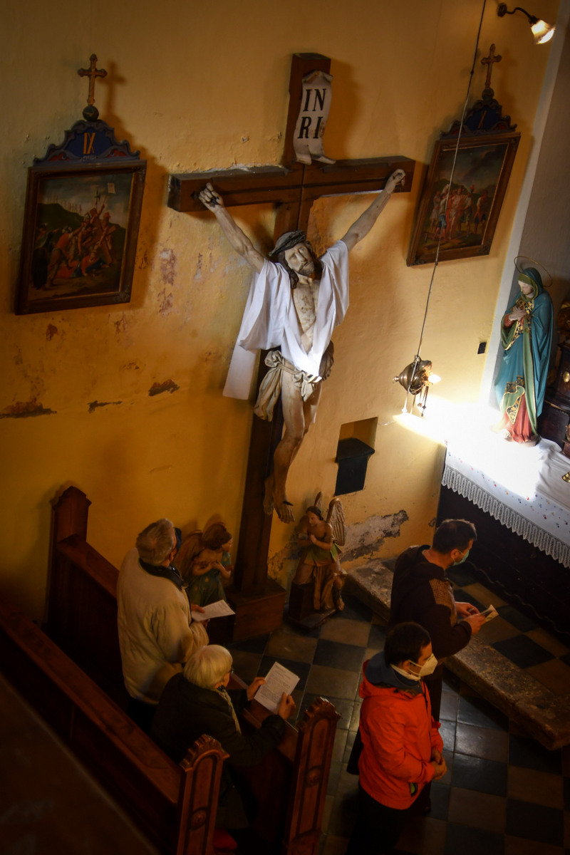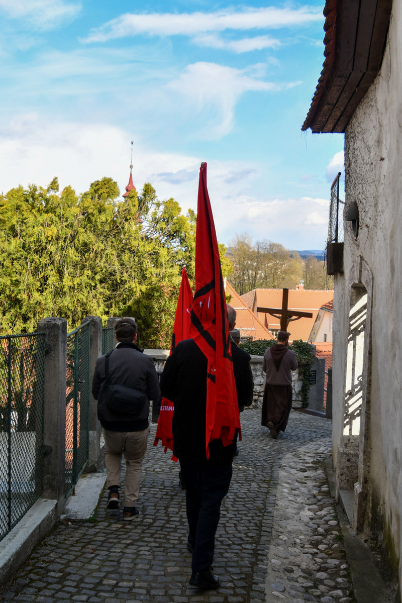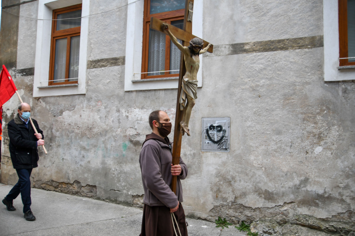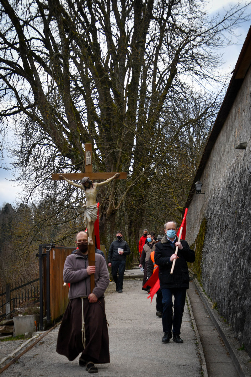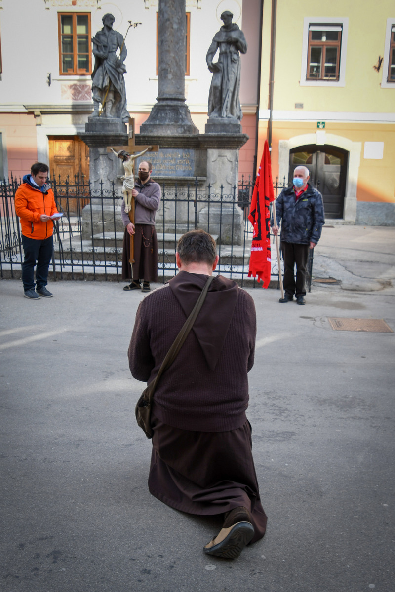 V ta namen so pobožnost križevega pota posneli na Jožefovo, v petek, 19. marca, ob 15h, ko je manjša skupina pasijoncev prehodila isto pot po kateri bo potekal križev pot na veliki petek. »Nihče ni samo gledalec ali opazovalec, ampak je vsak vključen v procesijo človeštva, obloženega s križi, …. In Jezusa z našim. Združimo se v tej molitvi z vsemi, ki so kot domačini ali obiskovalci hodili po poteh tega mesta, naše domovine in po poteh širnega sveta. V molitev vključimo tudi vse ljudi s katerimi se prepletajo naše življenjske poti. Svoj pogled pa vedno znova usmerimo k Jezusu – ki je z nami – naš Odrešenik,« so zapisali v uvodu priložnostne knjižice z besedili za premišljevanje ob postajah križevega pota po mestu Škofja Loka, ki jo je pripravila Župnija Škofja Loka.